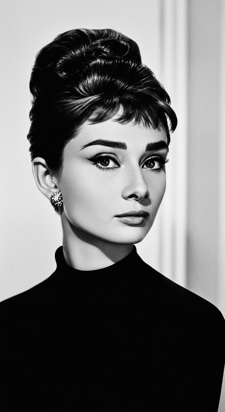 고전 미의 상징이자 우아함의 대명사인 오드리 헵번은 영화 속에서 번 헤어(올림머리)로 대중의 시선을 사로잡았습니다. 블랙 드레스와 진주 목걸이, 선글라스와 함께 완성된 이 스타일은 지금까지도 포멀한 자리에서 자주 참고되는 대표적인 헤어 연출입니다.